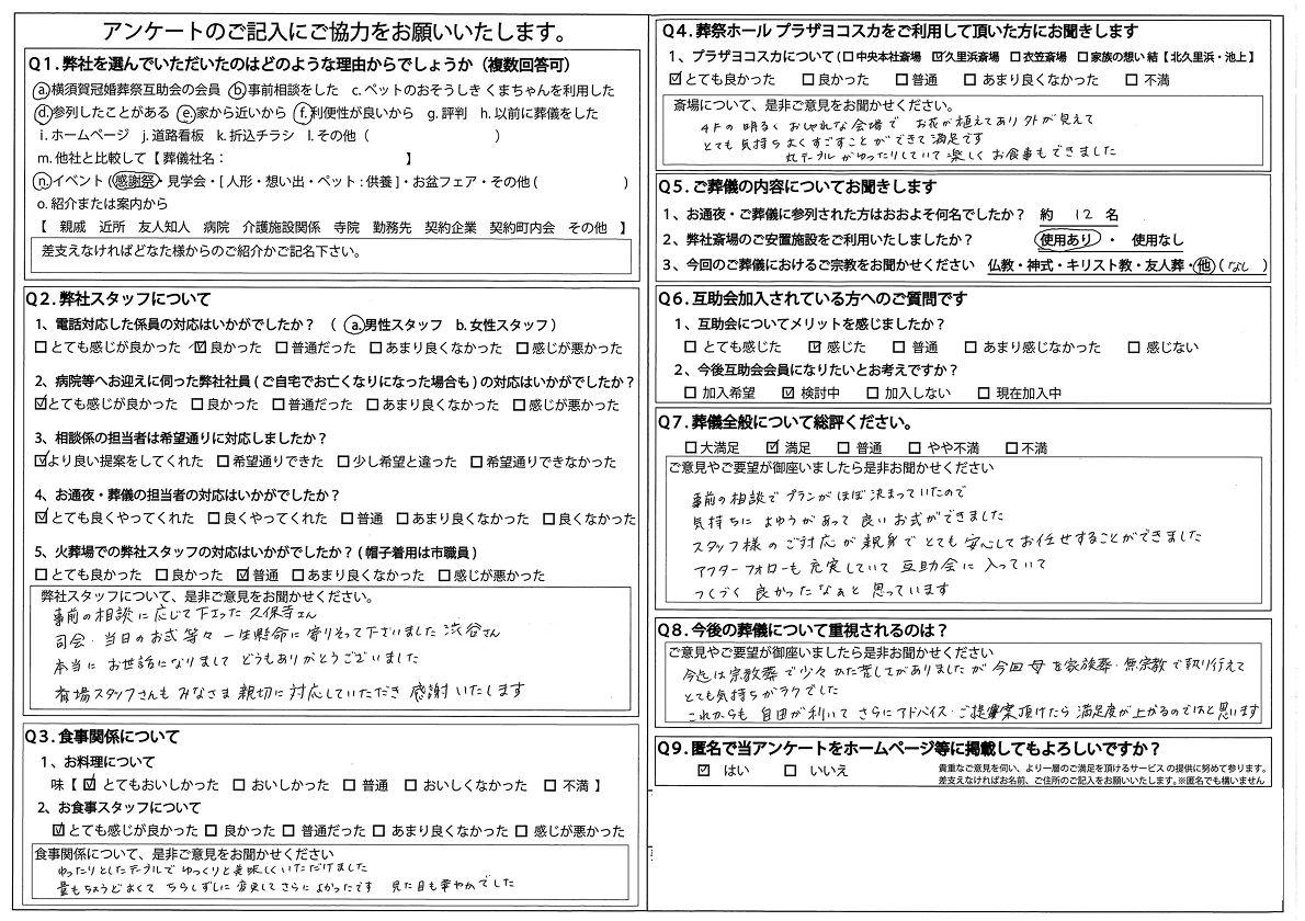 西村葬儀社では、葬儀を終えられたご遺族の方にアンケートにご協力いただき、より良いサービスの提供に努めております。
